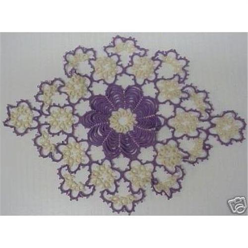 LOVELY TATTED LACE DOILY, BEAUTIFUL DEEP PURPLE COLOR - 6" X 8 1/2" EXCELLENT CONDITION, LOVE THE PATTERN AND THE COLORS - US AND CANADIAN BUYERS PLEASE PAY 3.00 FOR INSURED SHIPPING, WE PREFER PAYPAL.THANKS.