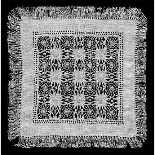 This is extremely fine, museum quality , hand made "Drawnwork" / "Drawn thread" needle lace doily. The lace maker starts with a piece of material and with a needle and thread draws the threads of the material together to make the design. The spider web in the doily is done with a needle and thread after the drawnwork is done as a filler. This technique dates back to the 16th Century. It took most likely 40 hours of work to complete this exquisite sample of the Victorian era finest workmanship. It survived its 125+ years of existence in excellent condition with no broken threads. Size : 5-3/4 x 5-3/4 ".