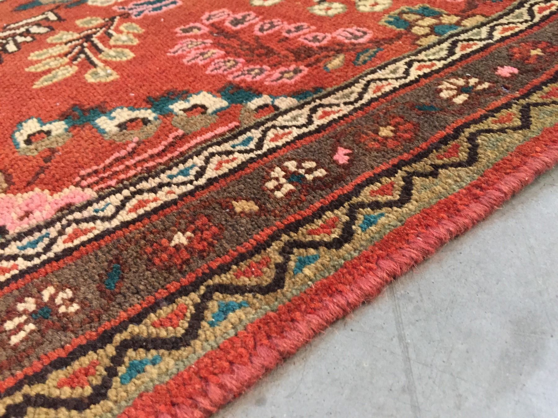 3'.5"X 13'.4" MAGNIFICENT AUTHENTIC HAND KNOTTED WOOL VINTAGE PERSIAN SAROUK RUNNER ,CIRCA 1950 s EXCELLENT CONDITION AND PILE IN BEAUTIFUL CLASSIC SAROUK RED AND MULTI ACCENT COLORS 100% HAND SPUN WOOL HAND KNOTTED IN IRAN