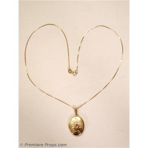 THE EXORCISM OF EMILY ROSE - This gold necklace and locket is from the movie "The Exorcism of Emily Rose." The necklace measures 16" in total length and the locket measures 1" x .75". The locket is engraved with initials "ECB" and opens to hold two small oval photos. The photos are not included with locket. This movie prop was screenworn and a must have for the true fan! (EER2069)