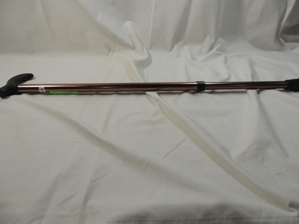 STRAIGHT NON FOLDING ADJUSTABLE ALUMINUM WALKING CANE. BRONZE COLOR. AS SHOWN. SEE PHOTO FOR MORE DETAILS.