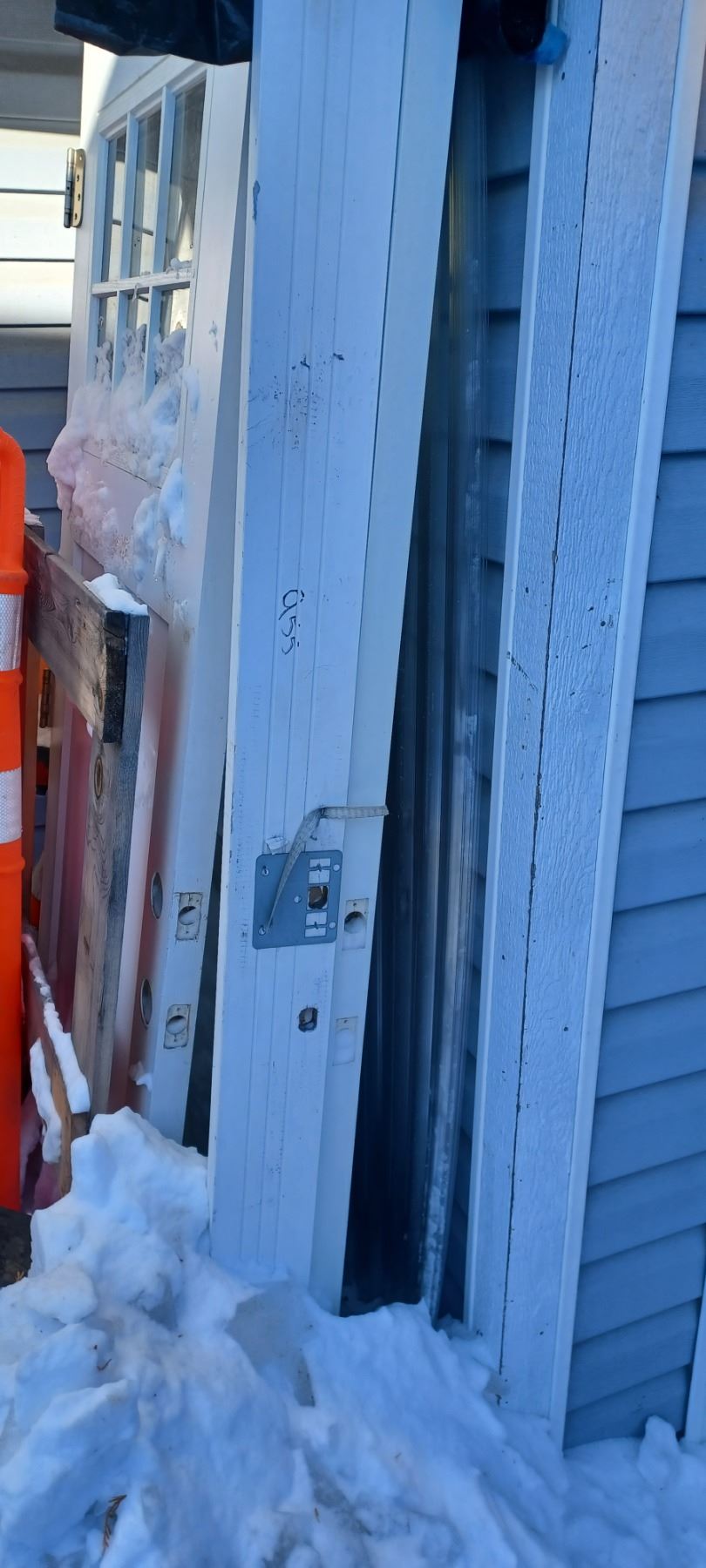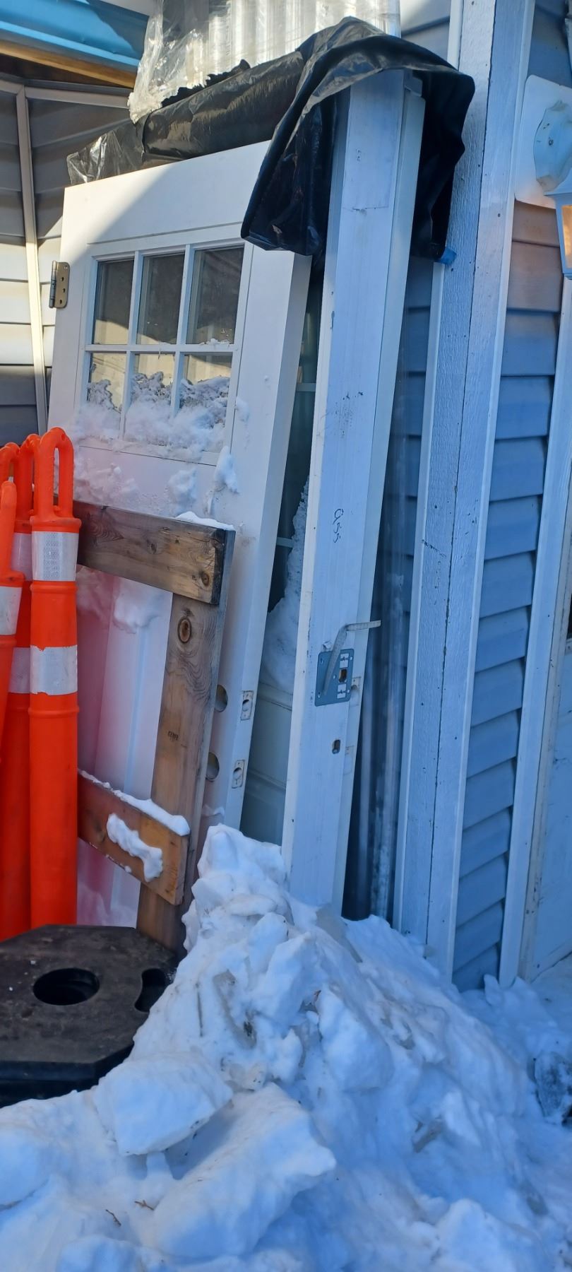 EXTERIOR DOOR WITH FRAME AND CORRUGATED CLEAR ROOFING SHEETS