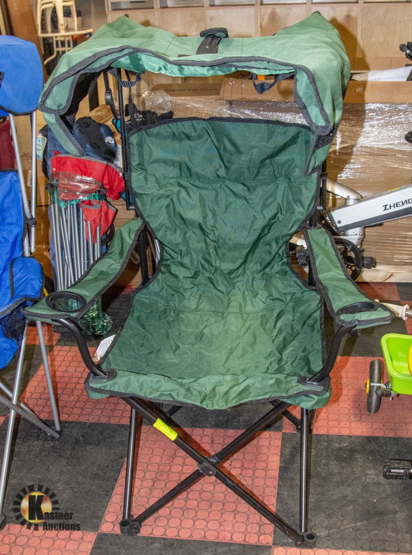 HEAVY DUTY CONSTRUCTION, FOLD-OVER CANOPY SHADE COVER - WATER PROOF CANVAS, DUAL CUPHOLDERS, CARRY STRAP - DARK GREEN WITH BLACK TRIM **ALL ITEMS MUST BE REMOVED BY 5PM SATURDAY, APRIL 29TH 2023. ALL REMAINING ITEMS WILL BE SUBJECT TO A $6.00 PER DAY STORAGE CHARGE. ANY ITEMS REMAINING AFTER MONDAY, MAY 15TH, 2023 WILL BE CONSIDERED FORFEITED. NO REFUNDS WILL BE ISSUED FOR FORFEITED ITEMS. TO SCHEDULE A PICK UP APPOINTMENT CLICK HERE