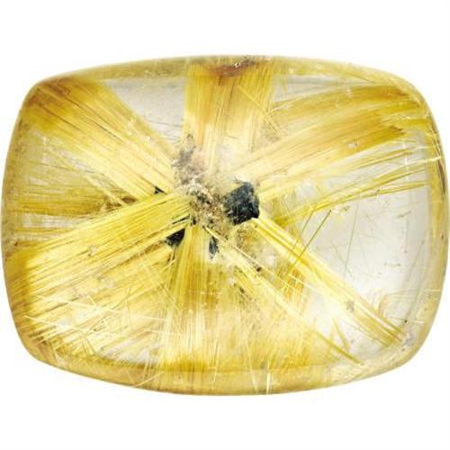 <B>EXTRAORDINARY RUTILATED STAR</B></I><BR> <I>Minas Gerais, Brazil</B></I><BR>Rutilated Quartz refers to quartz crystals with golden inclusions of rutile needles. Occasionally, in very rare instances, these rutile needles emanate from a hematite crystal to form a geometric "star". Rutilated quartz stars are an extremely rare occurrence, less than 2% of all rutilated quartz gemstones display a "star". A well centered, six sided star fills the entirety of this fine gemstone. Bright, broad golden bands of rutile needles form a "star" which can be easily seen through the clear quartz body. This rare gemstone is quite sizable at 46.3 x 35.2 mm. It is finely polished and well cut.<BR><BR><b>Shipping:</b> Requires 3rd Party Shipping (<a target="_blank" href="http://www.heritageauctions.com/common/shipping.php">view shipping information</a>)