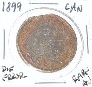 EXTREMELY RARE 1899 CANADIAN ONE CENT *DIE-ERROR* *EXTREMELY RARE AU HIGH GRADE*!! ***Coin, Currency & All Items Listed in this auction - Grades, Conditions and Values are not Safe Deposit Coins LLC Responsibilty. Grades, Condition and Values are determined by Consigner(s) & Buyers ONLY***