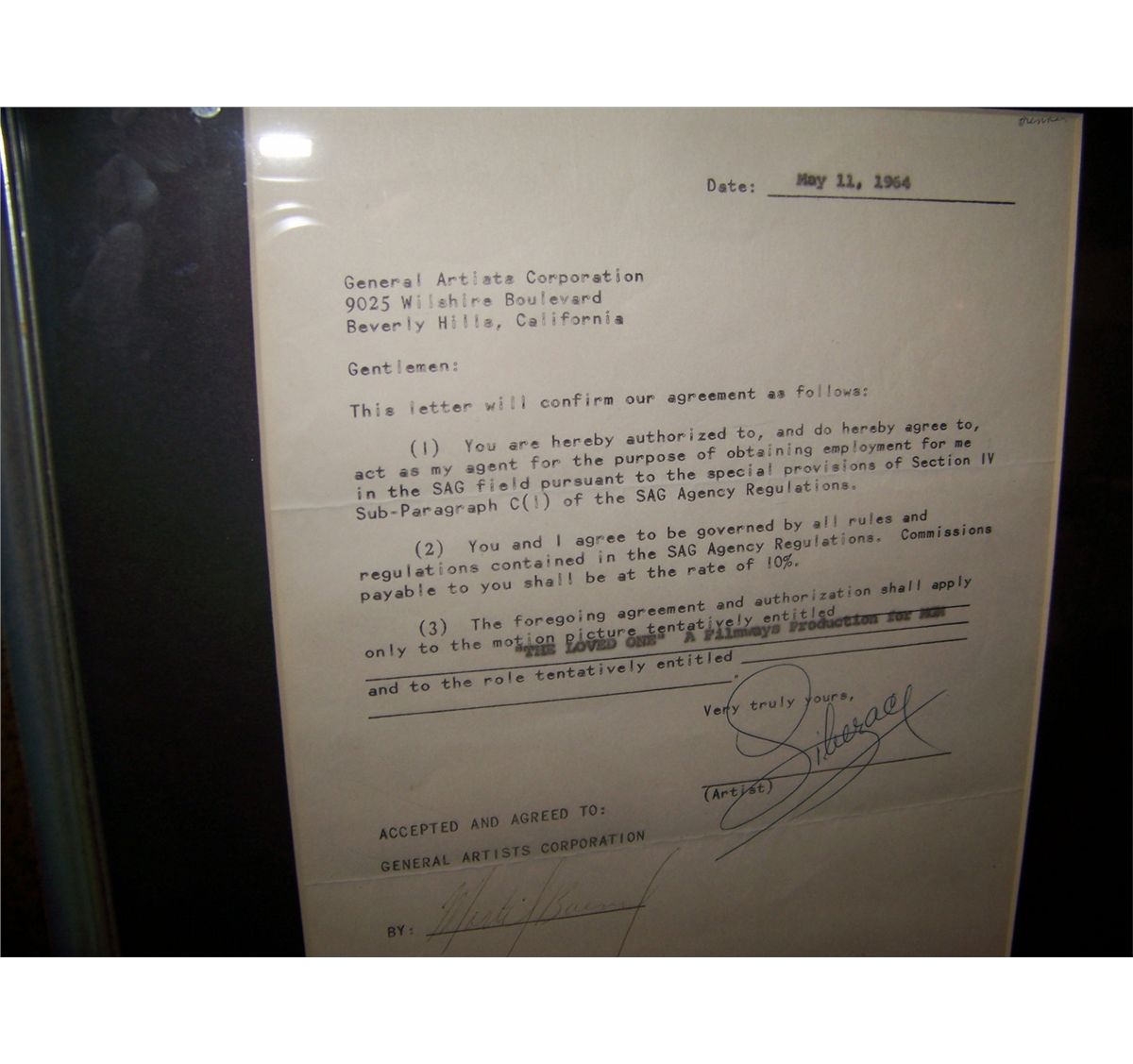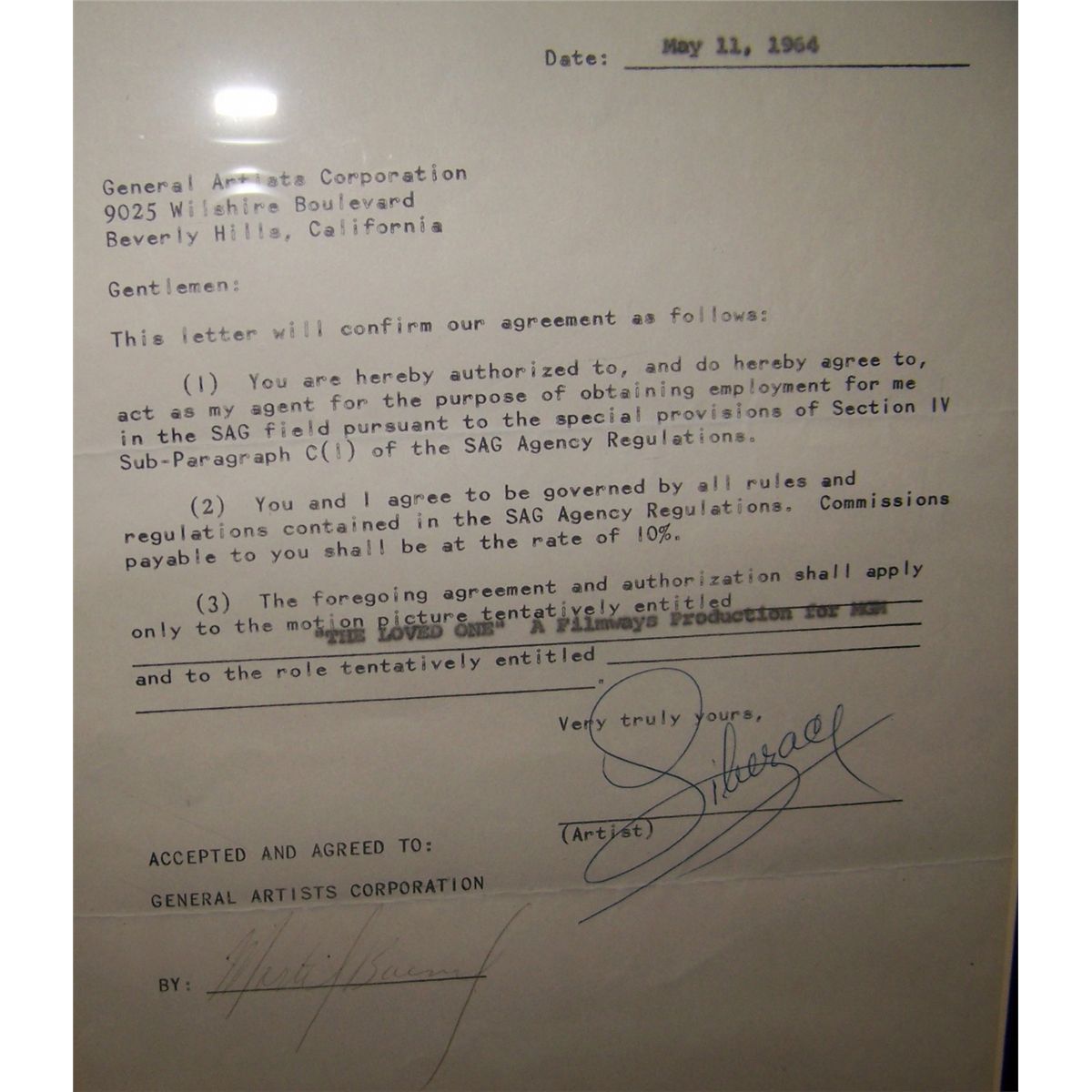 EXTREMELY RARE LIBERACE HAND SIGNED GENERAL ARTIST CONTRACT. SIGNED MAY 11, 1964.
