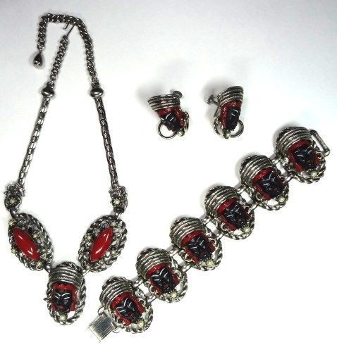 You will have to look a long long time before you find this set again! In excellent Vintage condition, if you are a collector of vintage costume jewelry then you KNOW how rare this set is! This set is not signed, but from our understanding, none of them were. Est Value: $350-$450.00