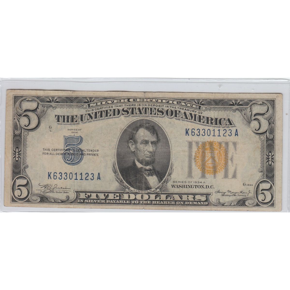 EYE APPEALING $5 NORTH AFRICA 1934 SILVER CERTIFICATE