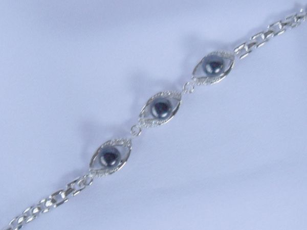 EYE BLACK PEARL CZ SILVER BRACELET***METAL: SILVER; APP **|**|** EYE BLACK PEARL CZ SILVER BRACELET***METAL: SILVER; APPROXIMATELY 10GRAMS 8-INCH ; MSRP: $200