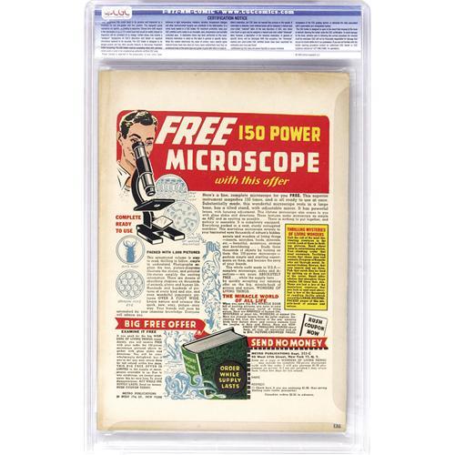 50. Since we cannot examine encapsulated notes or comics, they are sold "as is" without our grading opinion, and may not be returned for any reason. Auctioneer shall not be liable for any patent or latent defect or controversy pertaining to or arising from any encapsulated collectible. In any such instance, purchaser's remedy, if any, shall be solely against the service certifying the collectible.