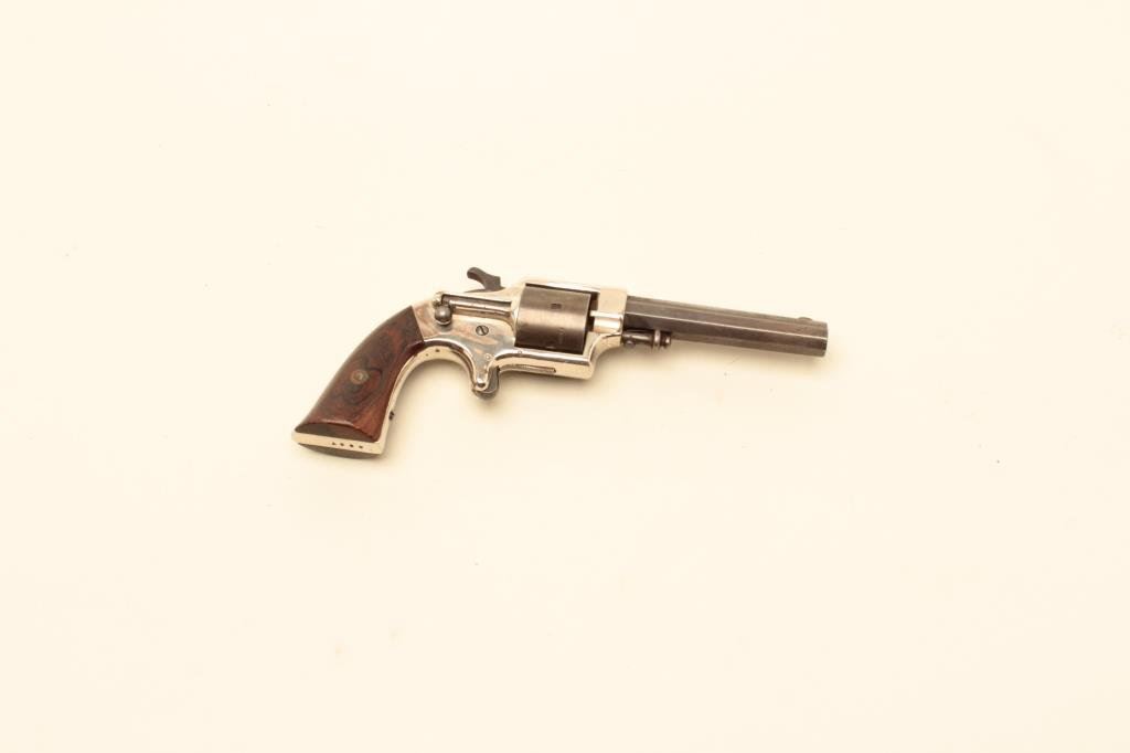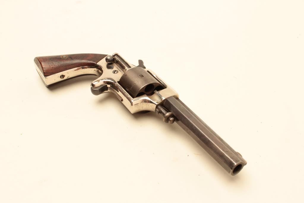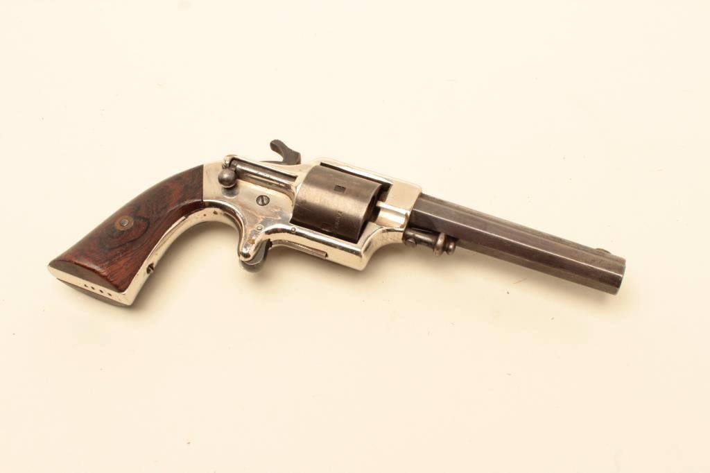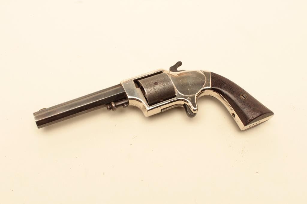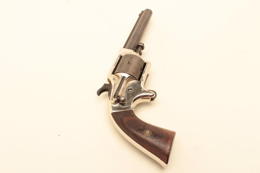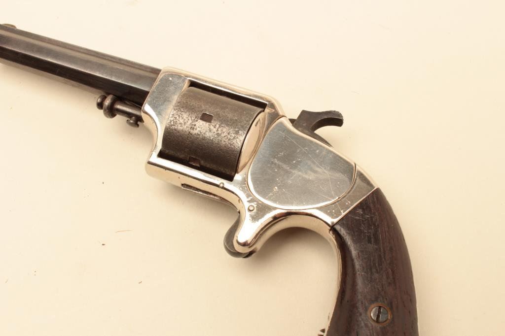 revolver from the Civil War era, S/N 8937. The frame shows an old re-plated finish with some pitting on the cylinder. The barrel and cylinder show an old re-blue of which 60% remains. The address is good. The action is tight and works well. (Antique) Est.: $100-$200