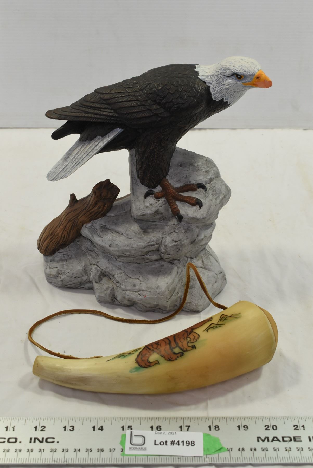 Eagle Carving w/ Chipped Beak & Fake Decorative Horn