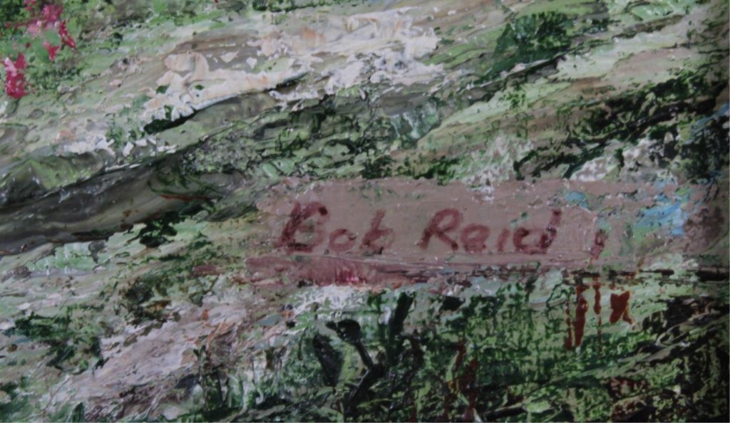 This is an original oil on canvas painting done by Bob (or Robert) Reid. Bob is a well known Oil Artist and this painting shows wonderful details of the Eagle Cap Wilderness, a wilderness area located in the Wallowa Mountains of northeastern Oregon (United States), within the Wallowa–Whitman National Forest. The artwork is signed in the art nd measures 16" x 20" with the frame measuring 22"x26"