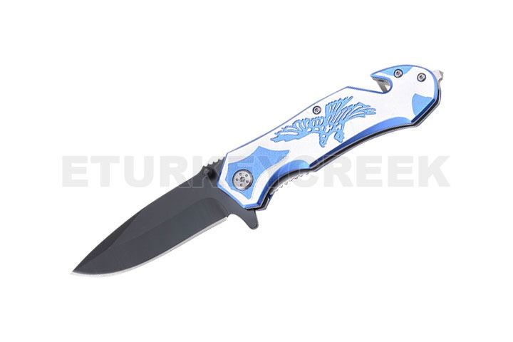 Eagle Design Handle Spring Assist Knife 4.5" Closed Blue