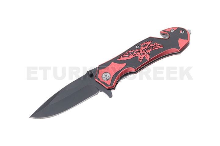 Eagle Design Handle Spring Assist Knife 4.5" Closed Red