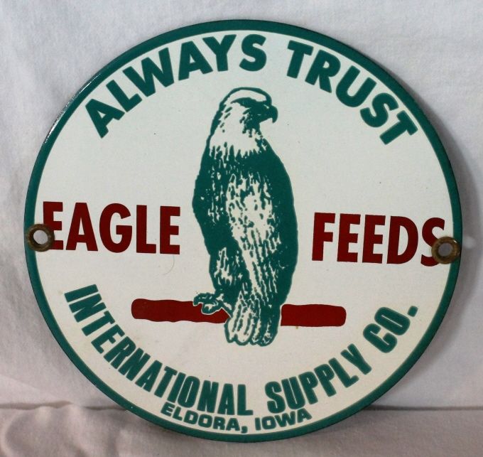 "Always trust Eagle Feeds International Supply Co.", Eldora, Iowa. 7" diameter