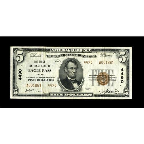 Eagle Pass, TX - $5 1929 Ty. 2 The First NB Ch. # 4490T