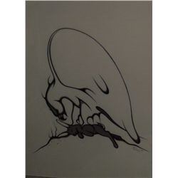 "Eagle Spirit Guarding the Sleeping Rabbit" painting, is an original by Artist Tim Restoule 1980,unique creation of his, who was a Chief (when I met him in person on the reserve); this First Nation Native American painting is framed; can be mailed to you safely with or without the glass !!! Woodland School of Art (which we encouraged and still do seek and sell )- TIM RESTOULE born in 1960 is Ojibway Ojibwe Ojibwa Artist, Past Chief of Dokis Reserve, in North America; his fascinating stories in his paintings are interesting !!! This 36 high by about 28 inches one is in excellent mint condition as we had it for over 30 years. Add to your great collection or start one or give as a wonderful gift !
