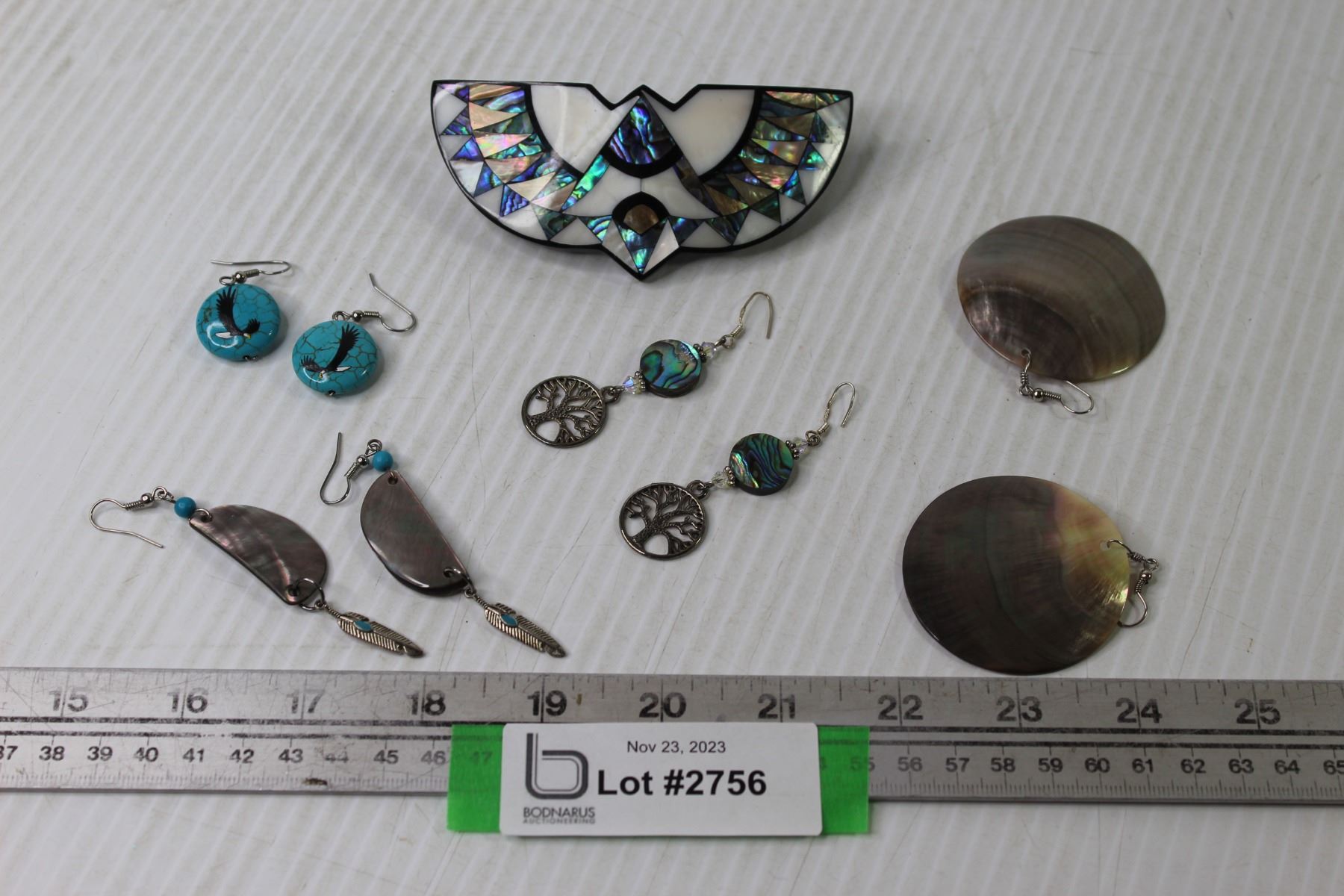 Eagle Sprit Inlaid Hair Clip - (4) Sets of Earrings