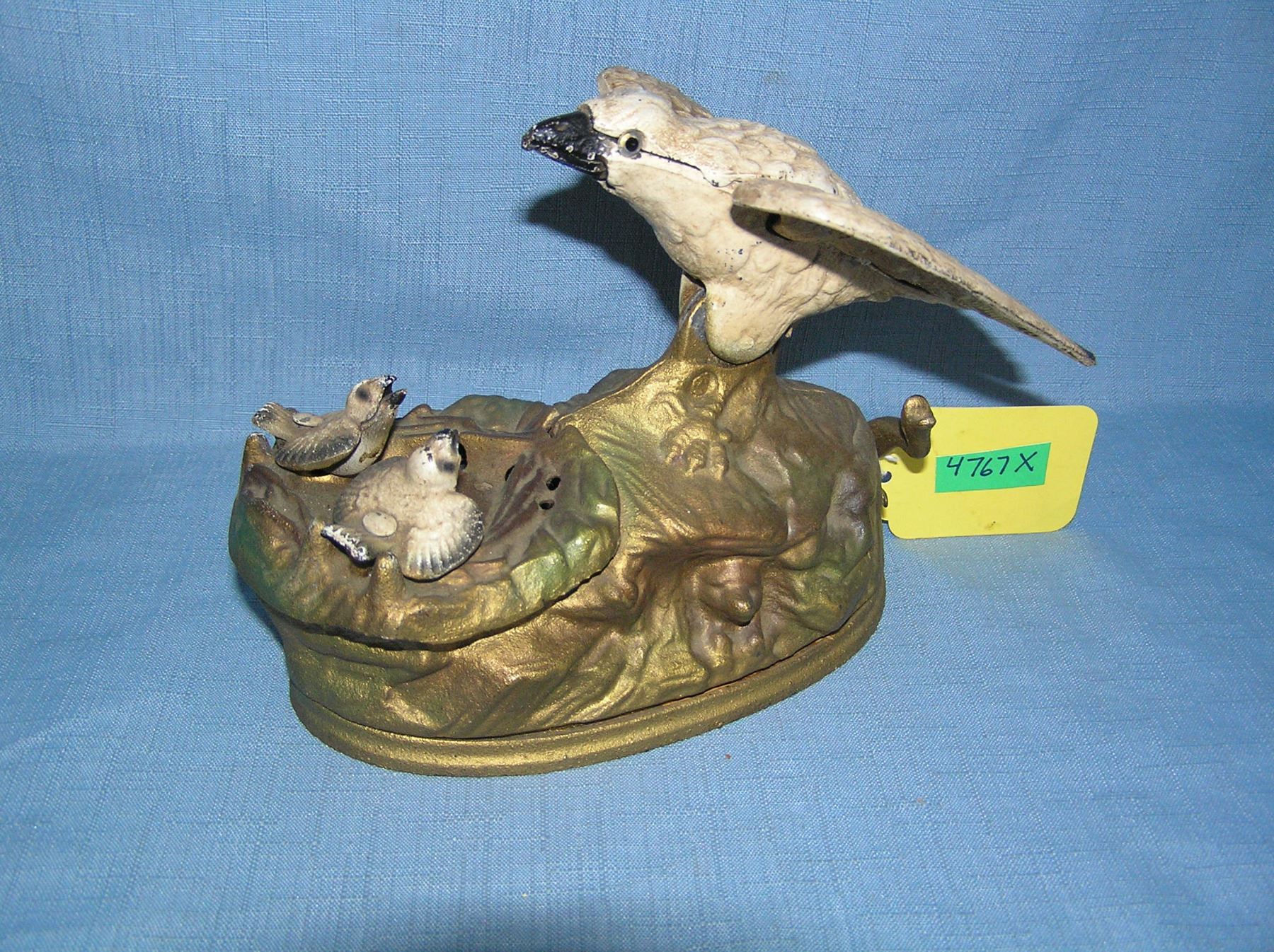 Eagle and Eaglets cast iron mechanical bank circa 1950s from the Book of Knowledge series est. value $500.00-$550.00