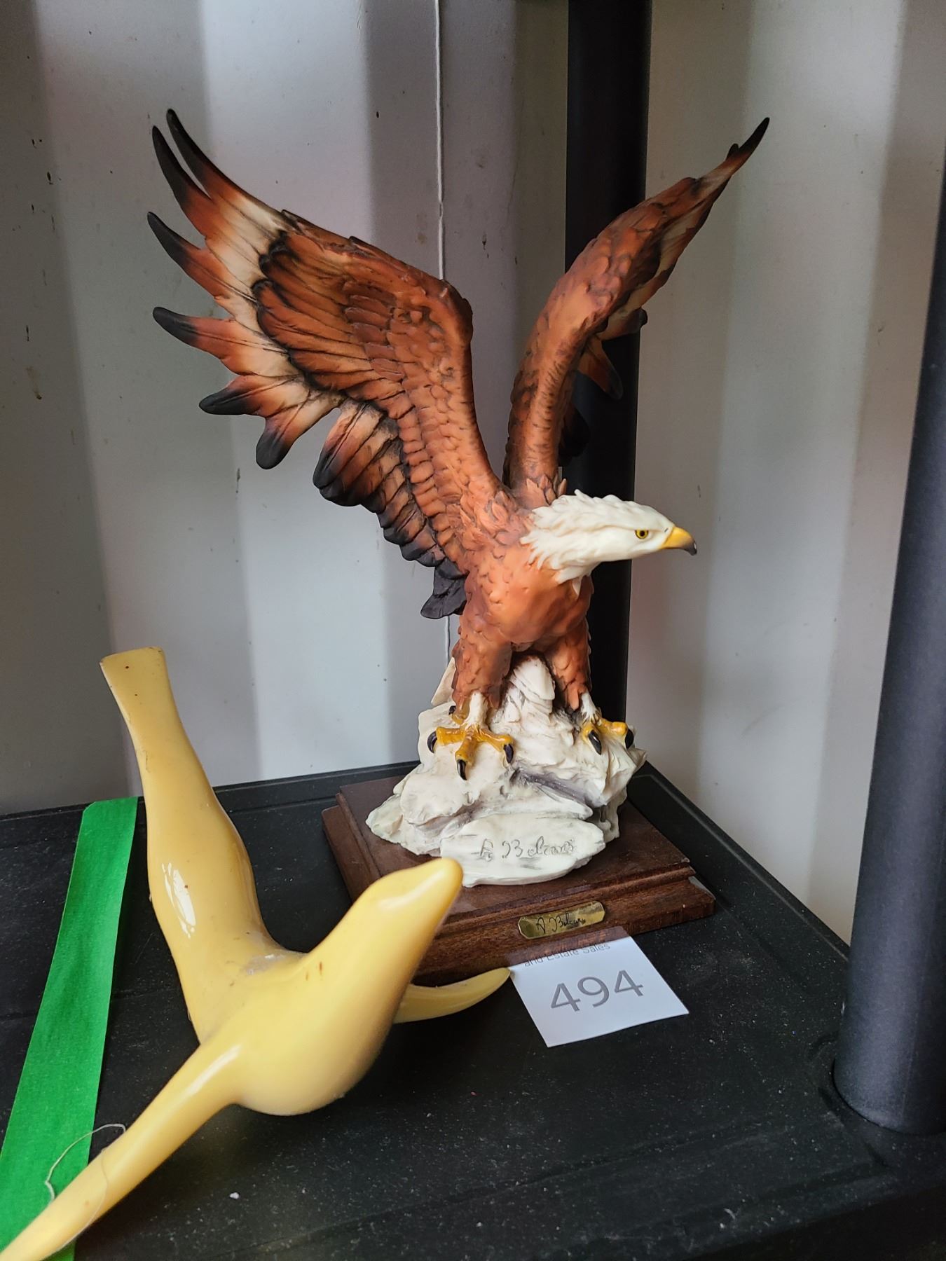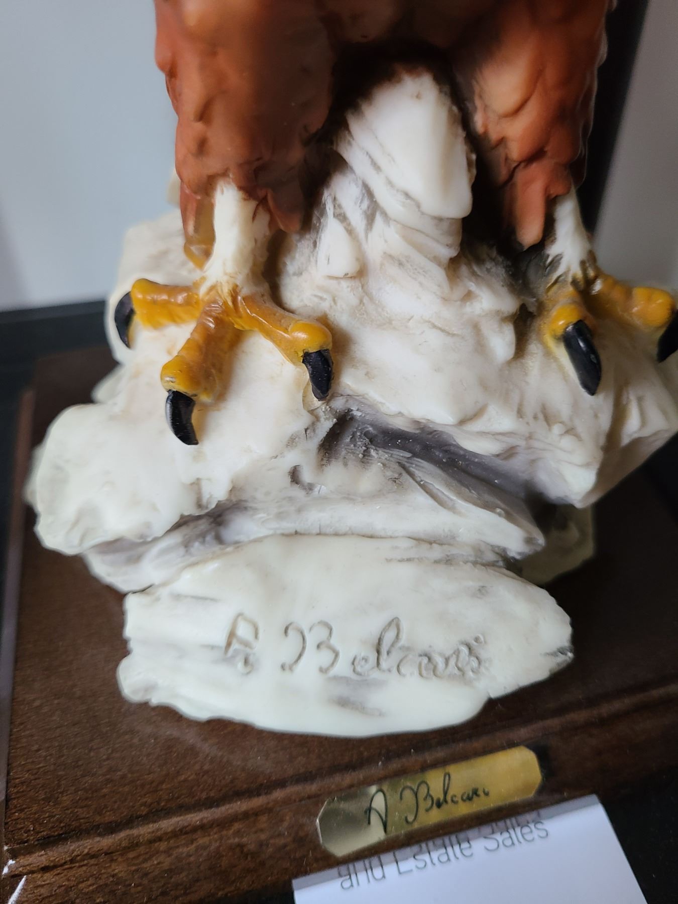 Small ceramic eagle on stand by A Belcari and seal. Very fragile, bring packing material. Pickup 9 am.