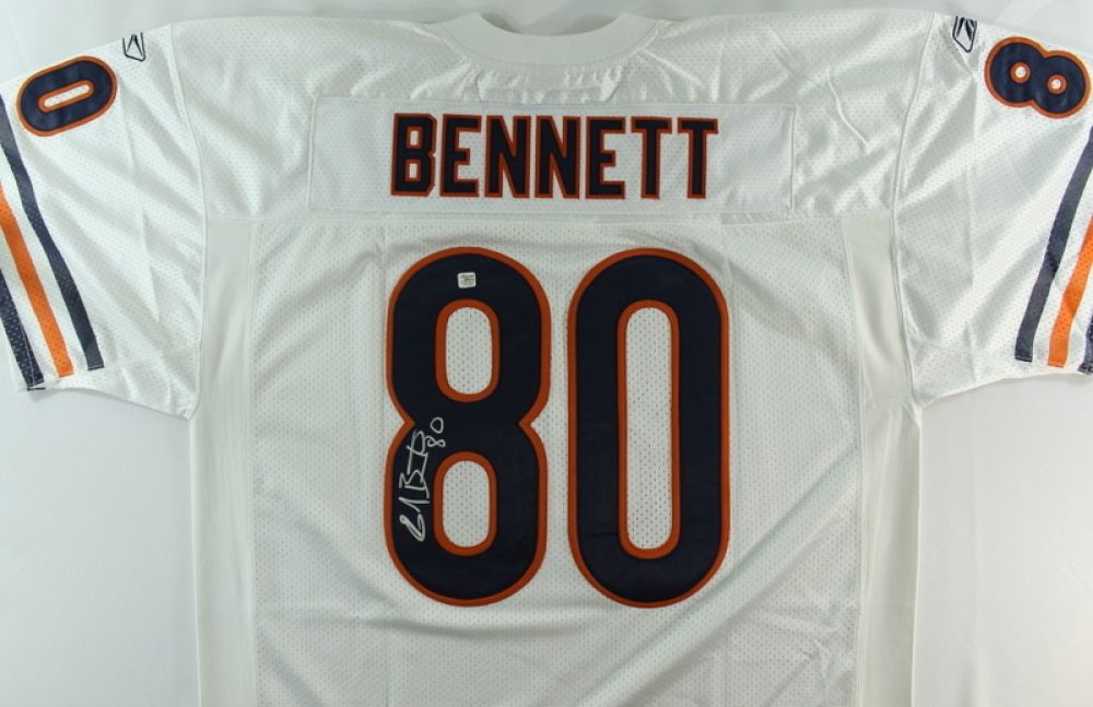 Reebok on-field style jersey. Everything is sewn on, size 52. Hand-signed in silver paint pen by Earl Bennett. The autograph includes an official Autograph Reference hologram and matching COA for authenticity purposes.