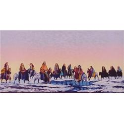 TURN OF THE CENTURY INDIANS WITH NEW HATS AND OLD HATS, state I, 1990, color screenprint, signed in pencil, the numbered edition 75, image 22 x 43", matted. $400/600
