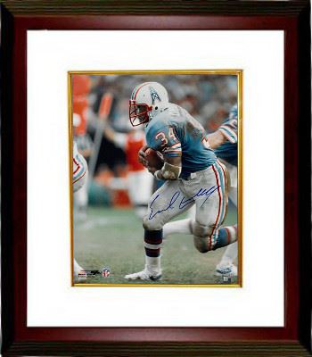Earl Campbell was the first draft pick overall in the 1978 NFL Draft by the Houston Oilers, and in that year he was named the Offensive Rookie of the Year by the Associated Press as well as the Most Valuable Player. The Luv Ya Blue era in Houston was due mostly to Campbell's running ability and Coach Bum Phillips' "good ole boy" personality. Campbell possessed a rare combination of speed and power, and was a prolific running back from 1978 through 1985. His outstanding single-season performance in 1979 earned him All-Pro, Pro Bowl, and NFL Offensive Player of the Year honors. Earl Campbell has hand autographed this Houston Oilers 16x20 Photo. Tri-Star Hologram and Certificate of Authenticity from Athlon Sports Collectibles. Custom White Mat and Premium Mahogany Color Framed as shown.