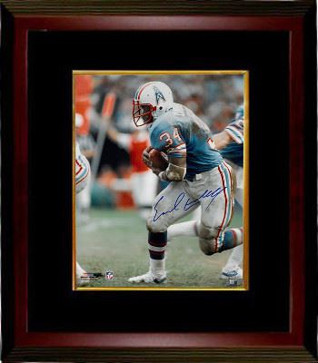 Earl Campbell was the first draft pick overall in the 1978 NFL Draft by the Houston Oilers, and in that year he was named the Offensive Rookie of the Year by the Associated Press as well as the Most Valuable Player. The Luv Ya Blue era in Houston was due mostly to Campbell's running ability and Coach Bum Phillips' "good ole boy" personality. Campbell possessed a rare combination of speed and power, and was a prolific running back from 1978 through 1985. His outstanding single-season performance in 1979 earned him All-Pro, Pro Bowl, and NFL Offensive Player of the Year honors. Earl Campbell has hand autographed this Houston Oilers 16x20 Photo. Tri-Star Hologram and Certificate of Authenticity from Athlon Sports Collectibles. Custom Black Mat and Premium Mahogany Color Framed as shown.