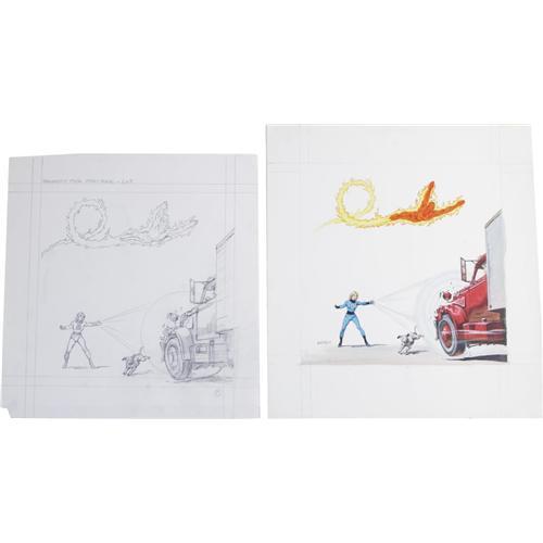 <B>Earl Norem - Fantastic Four: Island of Danger Illustration Original Art, Group of 8 (Marvel Books, 1984).</B></I> Face front Marvelite -- each member of the Fantastic Four struts their stuff in this lot of four painted illustrations, each with their matching pencil preliminaries. The painted pieces have been separated and removed from their illustration board backings, while the pencil drawings have some pieces out of their corners; otherwise, the art averages Very Good condition.<BR><BR><b>Shipping:</b> Flat Material, Small (<a target="_blank" href="http://www.heritageauctions.com/common/shipping.php">view shipping information</a>)