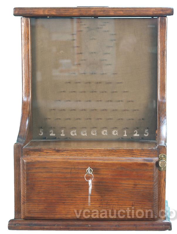 Early 1 Cent Countertop Wooden Penny Drop Skill Trade Stimulator, all original w/ keys