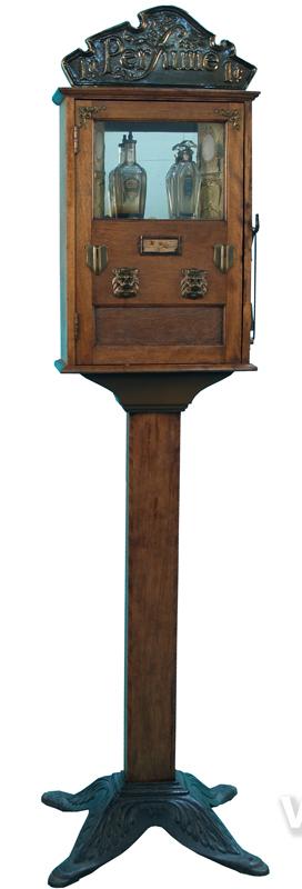 Early 1 Cent Floor Model Perfume Spray Dispensing Machine w/ 2 lion face sprayers, in great condition