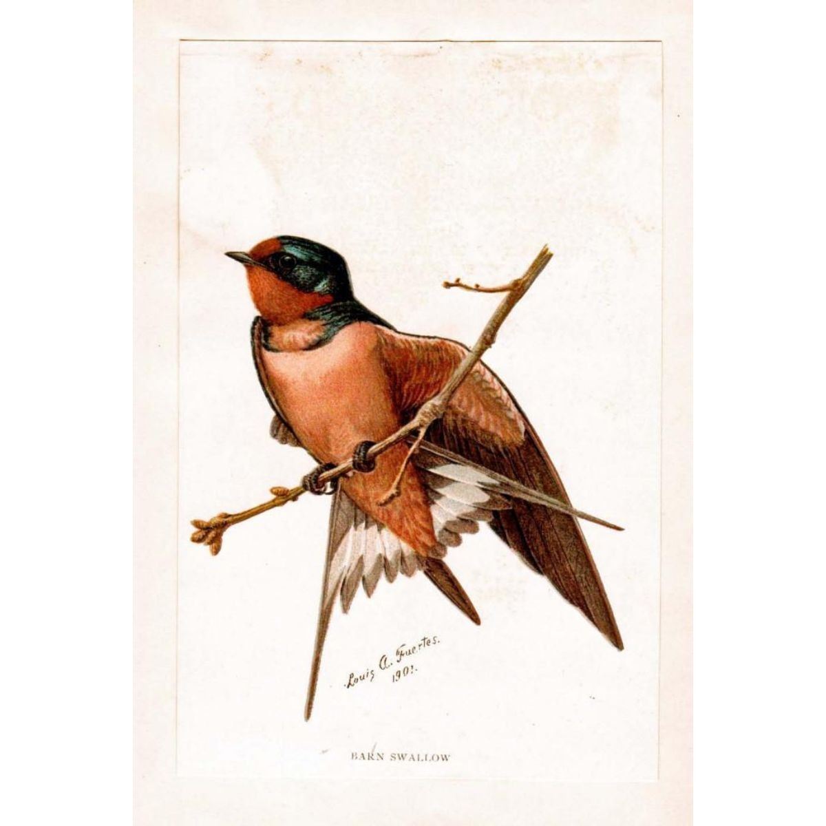c1901 color lithograph, #105 Barn Swallow from "The Children's Book of Birds by Olive Thorne Miller. 5 1/2" X 8".Â