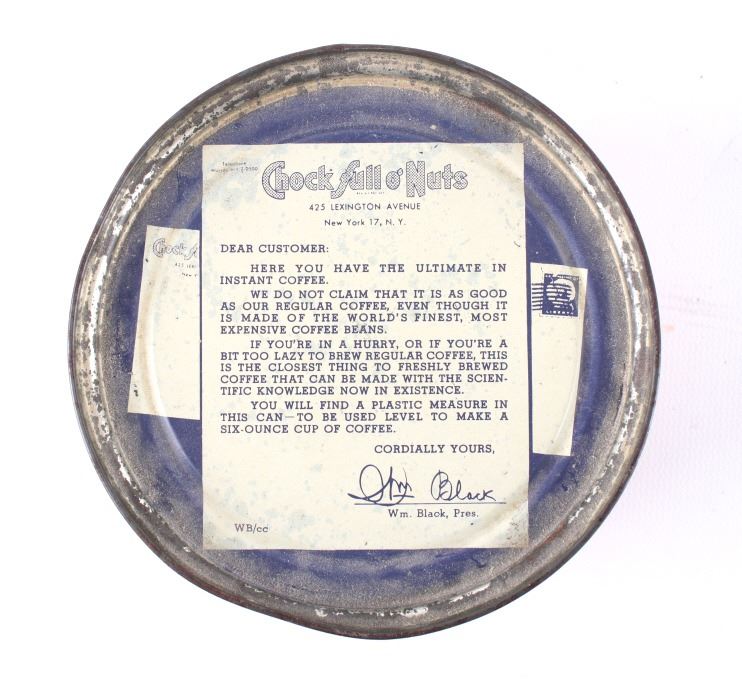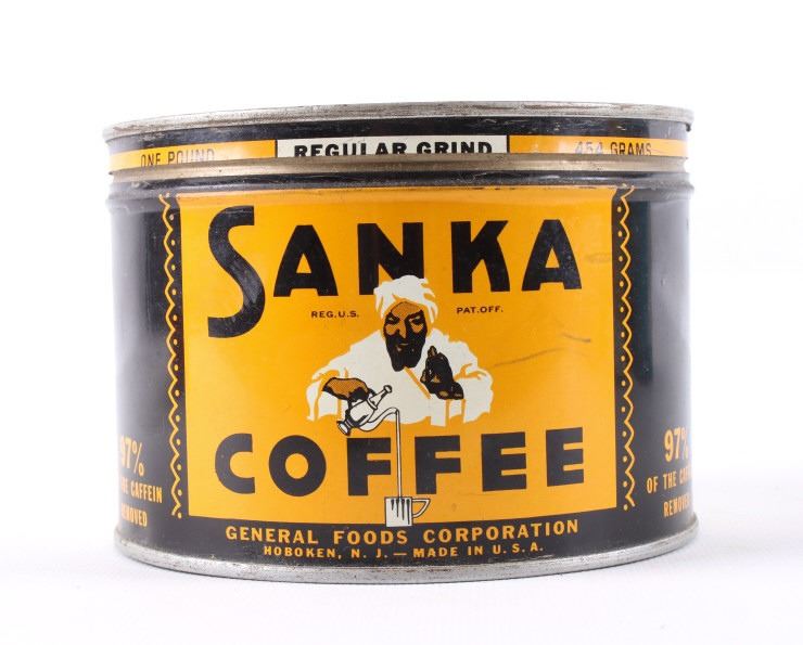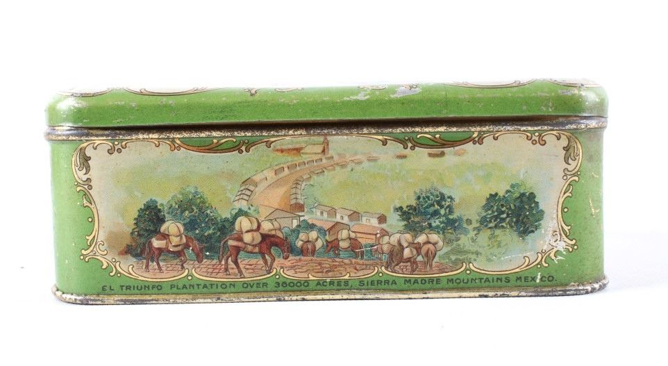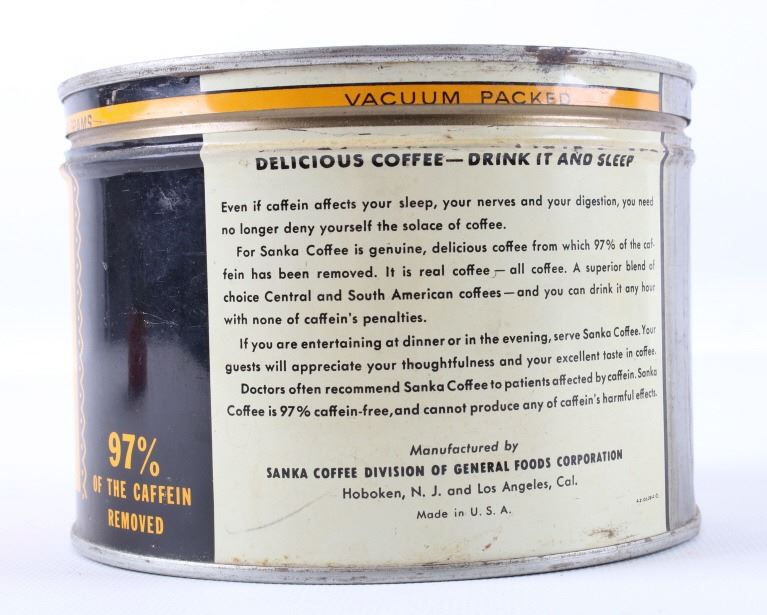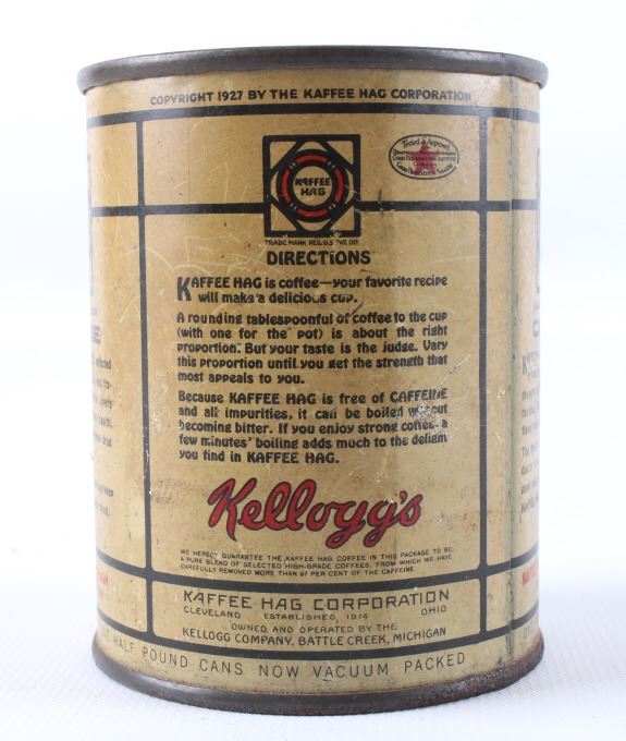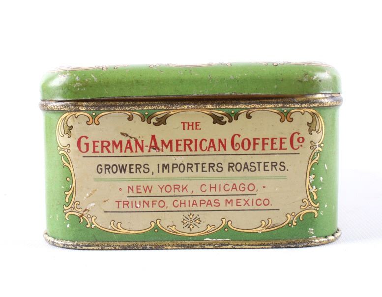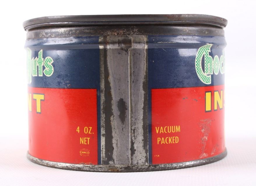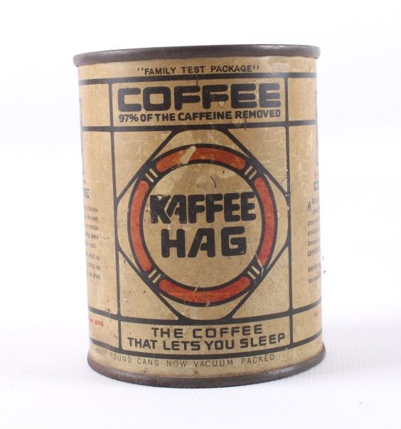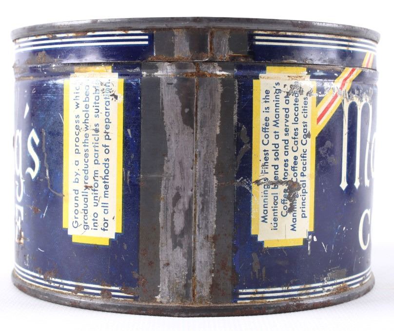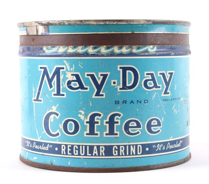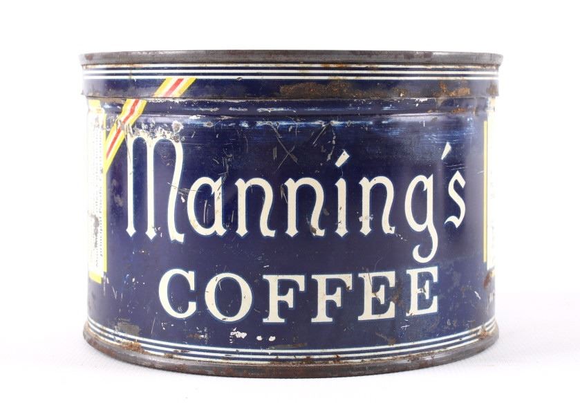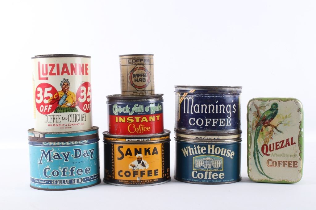 Included in this lot is a collection of eight various coffee tins. These tins include: Chock Full o'Nuts, White House Coffee, May Day Coffee, Sanka Coffee, Mannings Coffee, Luzianne, Kaffee Hag, and Quezal Coffee. The sizes of the tins range from 4 oz. to one pound. Only two tins are dated; the Mannings tin is dated 1938 and the Kaffee Hag tin is dated 1927. All of these tins are in good condition, with some normal scratches and rust from their age. The smallest tin, Kaffee Hag, measures 3 1/4" x 2 1/2" x 2 1/2" and the largest tin, Luzianne, measures 5 1/2" x 4 1/4" x 4 1/4".