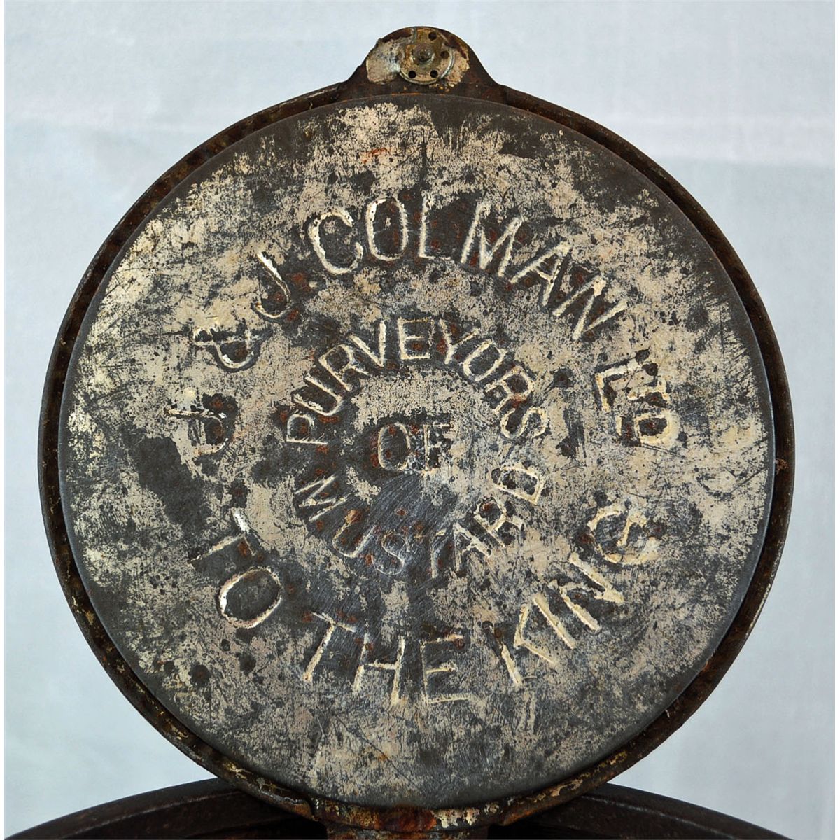 Early 1900's Colman's Bull Mustard Tin. 7.25" Tall x 7.75" Diameter.;Very good. Missing original paper label under lid.