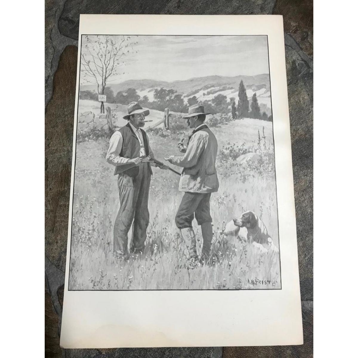 c.1904 half-tone Print, A. B. Frost, "Going 'Round The Old Man", hunting scene. 10" X 15".
