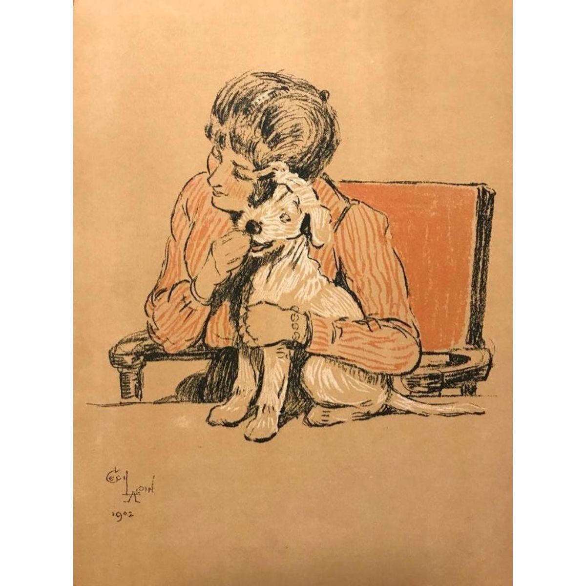 A Dog Day or The Angel in the House by Walter Emanuel, pictured by Cecil Alden, published by R.H. Russell, New York, 1902. Color lithograph, book plate print, of a little terrier dog. 9" X 12" ready to frame.