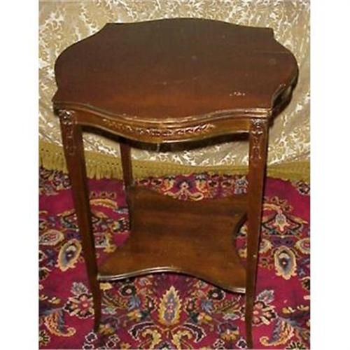 This is lovely Prlour table in original used condition, showing use but not abuse, Love the hand carved garland carvings and rose and a tulip above each leg, This table has very useful shelf, US Buyer please pay for shipping plus insrance, it will be calculated depending on the distance and shipped via Air Cargo Airport to Airport, 26" high- 20" x 20" - Thanks.