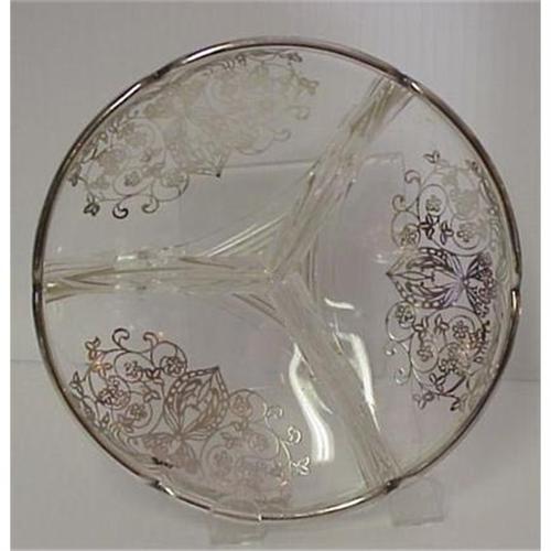 Very beautiful antique sectional footed bowl, Decorated in silver overlay style in floral design - Measures about 6 1/4" in diam. and 2" high - Very good condition - Free of damage - U.S. buyer to pay 7.00 for ship. plus insurance if desired - Thank You for looking!
