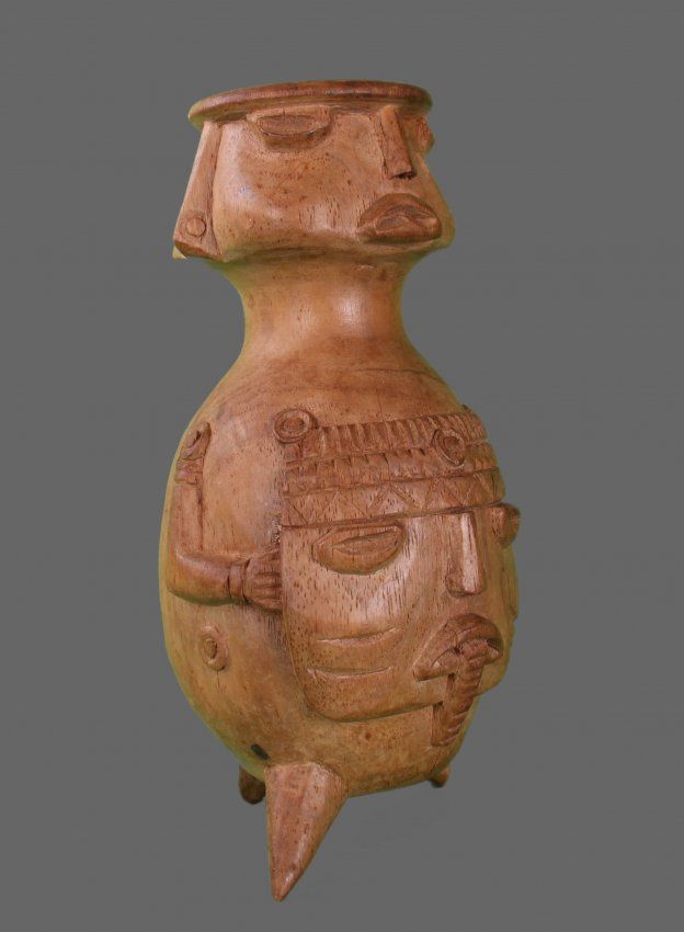 Early 1900's Wood Carving Pre-Columbian Style Figure (Ecuador) (Size: See Last Photo for Measurements)