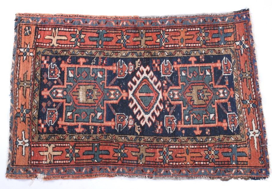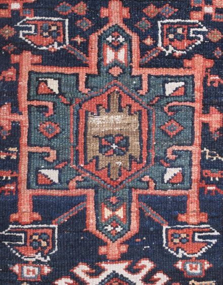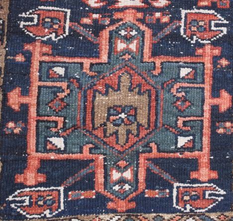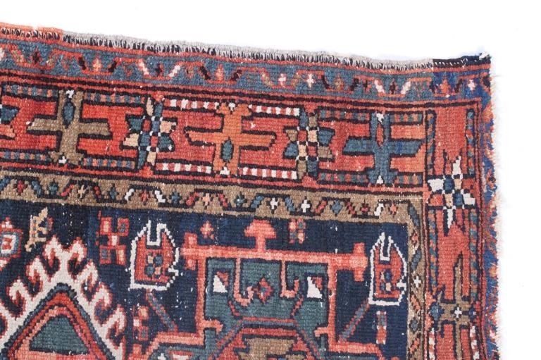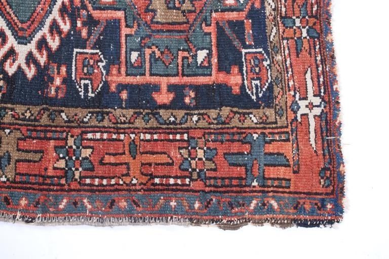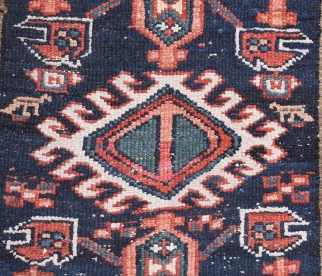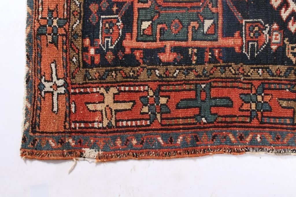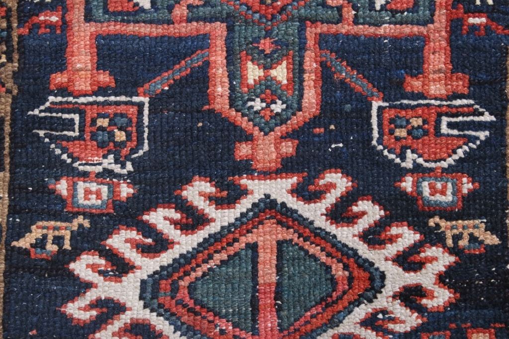 For your bidding pleasure is this 19th C. Southern Hamadan Nahavand Rug. Nahavand is a town in the province of Hamadan which is situated in the western part of Iran. The surrounding region around the city of Hamadan is one of the most productive when it comes to carpet manufacturing in Iran. In almost every village there is manufacturing of unique and simple carpets, and in all sizes. The quality is very high and thanks to the high shiny wool they use, the carpets are very durable. Navahand rugs often have a "leaf-like" medallion in the middle with flowers and twigs in the background. A border with flowers and typical vases can also be seen. The dominating colors are often a kind of pale rust-red and beige on a dark blue background. This rug is in good condition with some wear spots to the piles. There are many leaf like medallions on this rug along with bird like bordering with floral design throughout. There are geometric motifs that complement the floral motifs. These rugs are ranked the PRIZED carpets manufactured in this area. The measurements of this rug are 54" x 36".
