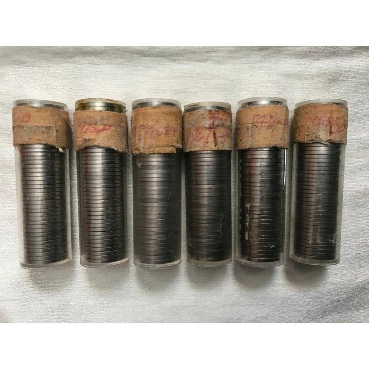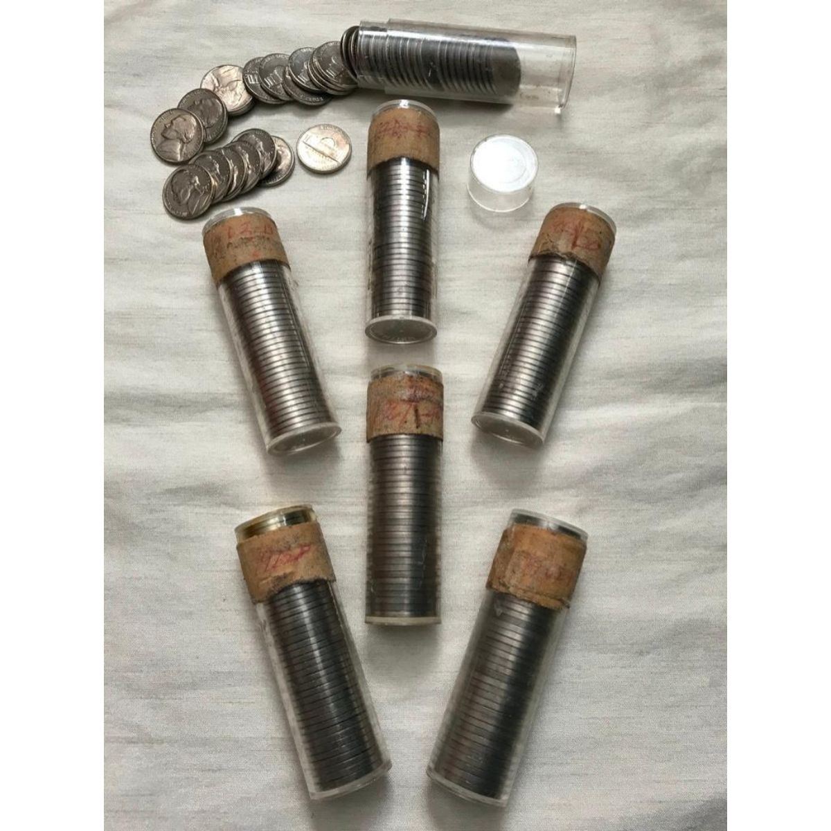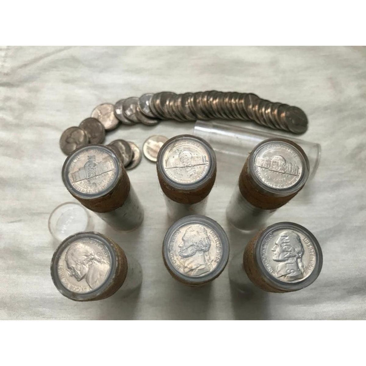 Group of 7 plastic cases, rolls, filled with 1960's Jefferson & Monticello United States nickels. Coins recently found in a safe in Mississippi where they had been stored for decades. 6 of the 7 rolls are sealed with tape, with handwritten identification. Unsealed roll was opened for photo purposes & contains 40 coins, 1962 D nickels. * Condition as seen in photos. Remaining sealed rolls are marked: ( 2 rolls ) of 1962 D coins, a roll of 1961 P coins, 1963 D coins, 1963 P coins & 1962 P coins. Condition unknown on sealed rolls, but appearing to be very good & possibly uncirculated.