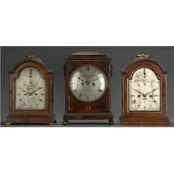 Early 19th Century mahogany cased bracket clock having a stepped pediment, brass grill panels and ring drop handles, silvered dial signed Thwaites & Reed, twin fusee movement, 43cms high - see illustration