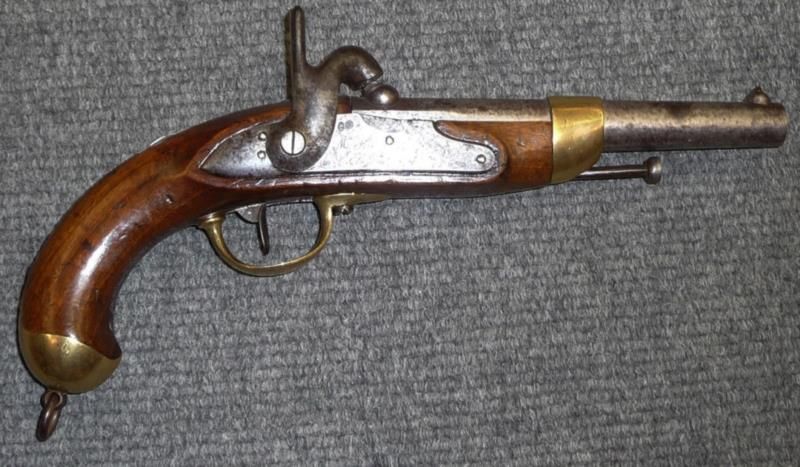 An early 19th century French Percussion Cap Service Pistol stamped C.de17, 6A, Mre1822