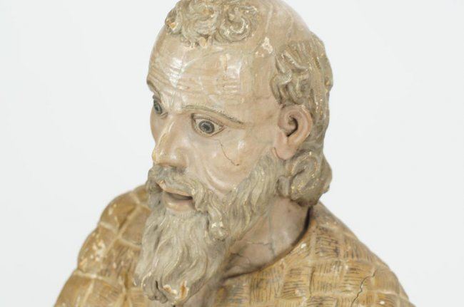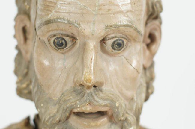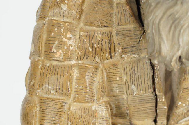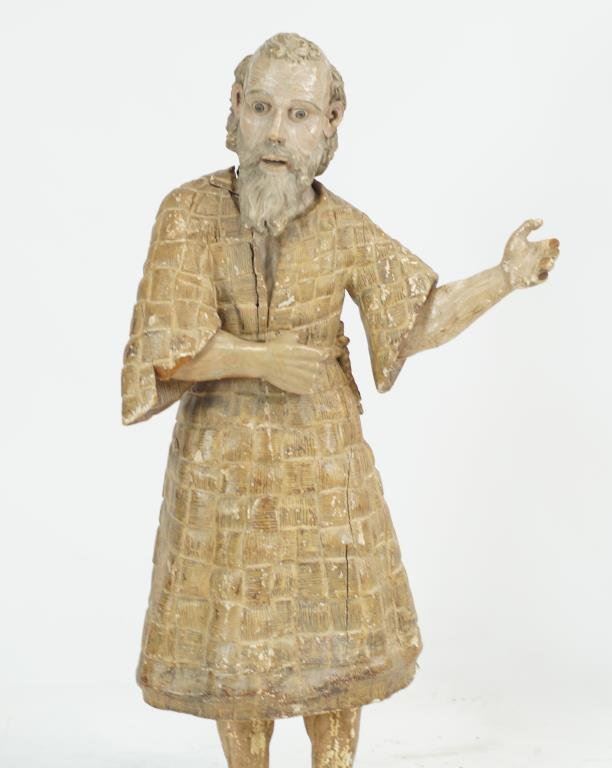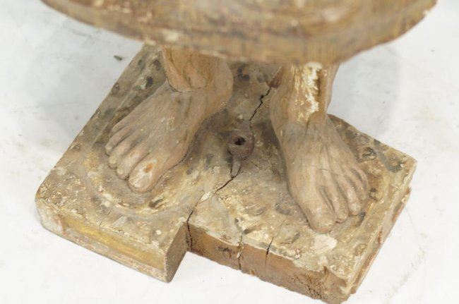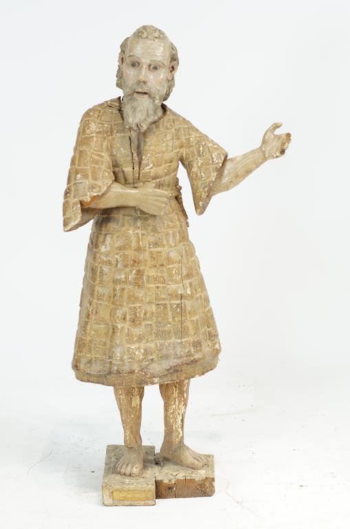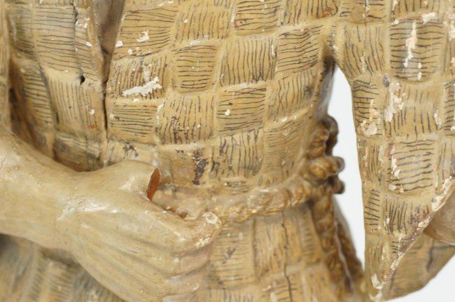 shows polychrome paint and normal wear for a 19thc and possibly earlier piece