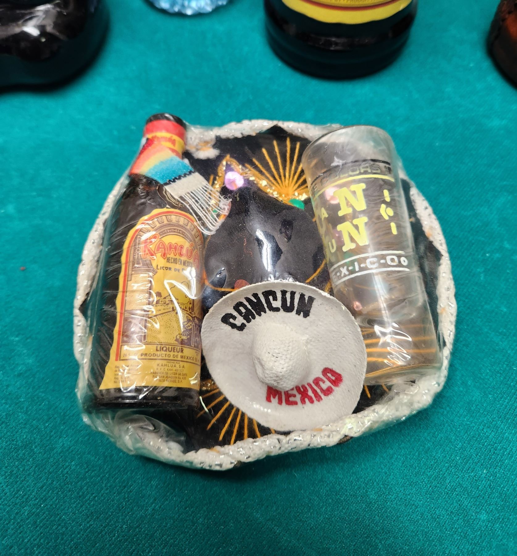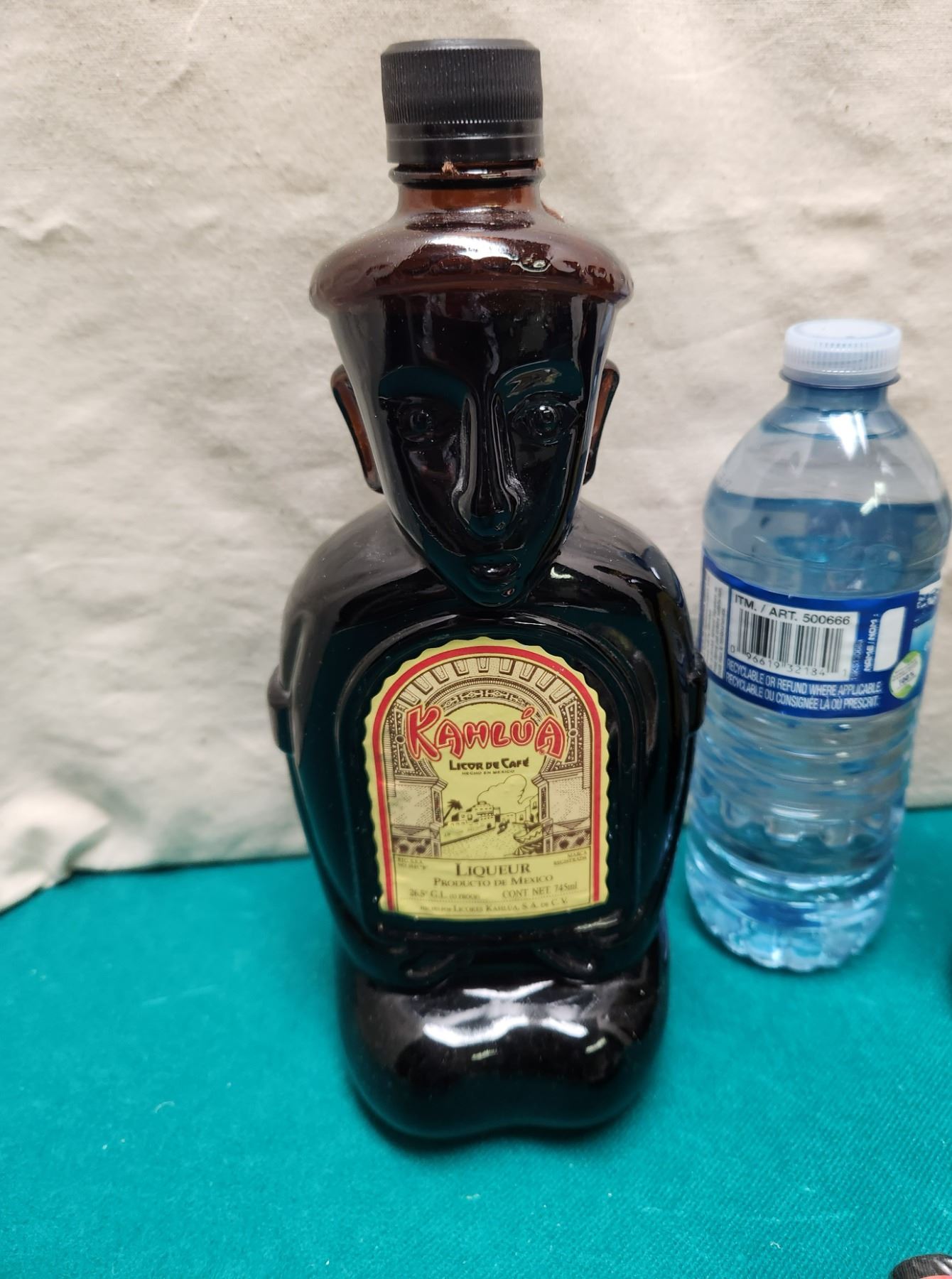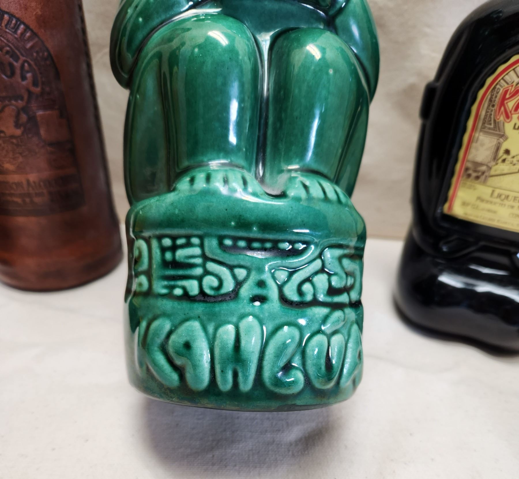 Four Larger Bottles- 26.5% alc./vol. 745ml. 20% alc./vol. 750 ml and 21% alc./vol. 750 ml. and one mini bottle at 26.5 alc./vol. 50 ml. Jade Green Mayan Ceramic Bottle is 53 proof 750 ml. Products of Mexico. Mini bottle comes with shot glass and two mini sombreros.