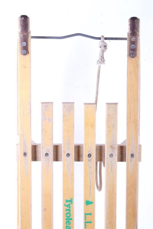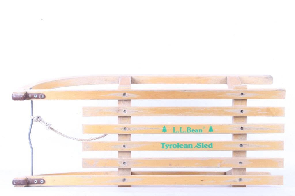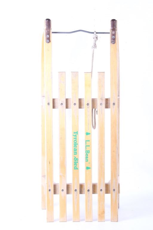 For your consideration Early 20th C. Austrian Tyrolean Wooden Sledge. L.L.Bean was founded in 1912 by Leon Leonwood (L.L.) Bean and transformed by his grandson Leon Gorman into a globally recognized outdoor brand. Tyrolean sledges are a style of toboggan that were traditionally used in East Tyrol. Tyrol is a western Austrian state in the Alps that is known for its ski resorts, historic sites and folk traditions. The measurements of the sledge are 9" x 31 1/2" x 12".