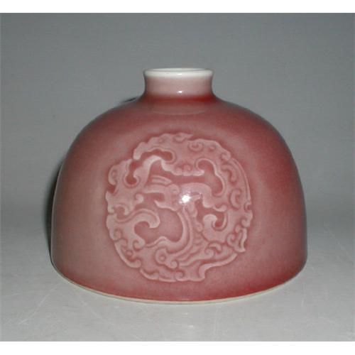 Very nicely potted old Chinese peachbloom scholar's waterpot with Kangxi marked on the bottom. Early 20th C in fine glaze and condition.