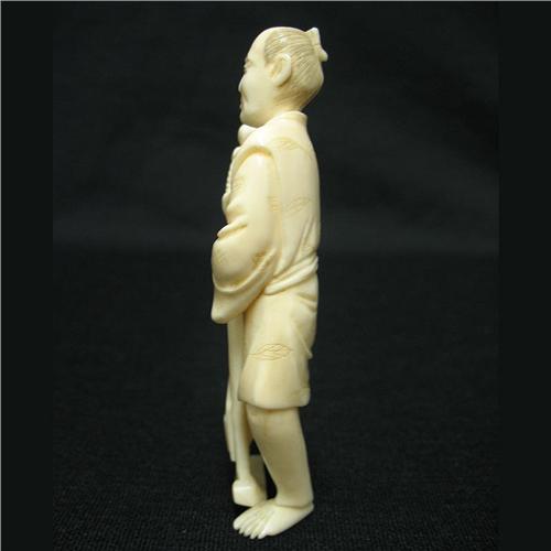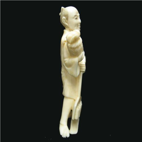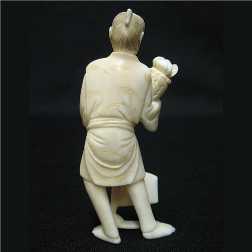 Early 20th C. carved ivory figurine of a man with candles and basket; 4" high; unsigned; minor hairline on back; unsigned
