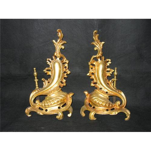 </font></strong>Andirons Early 20th Century Castings Restored 24k Gold finish sold in pairs 16"ht x 6"w </font>